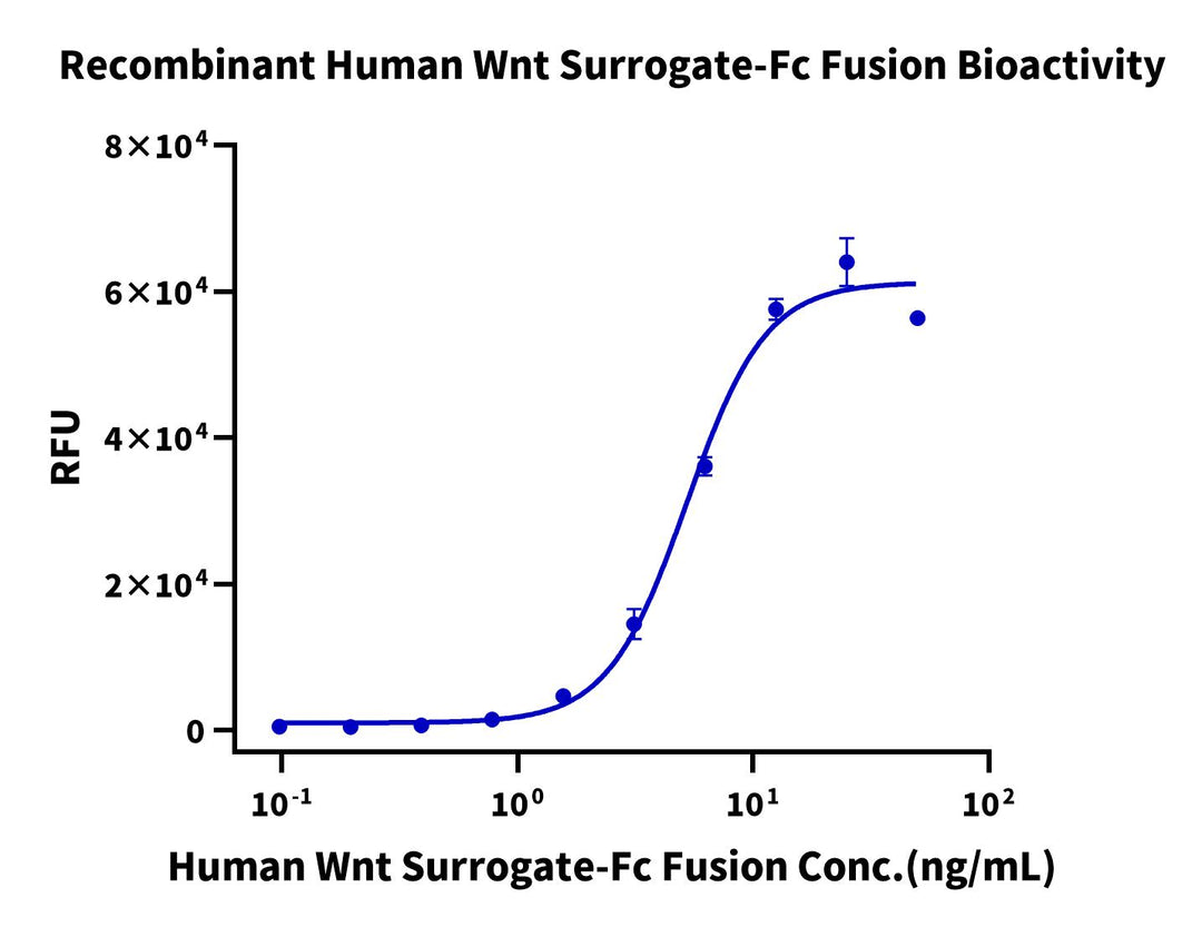 Cell level experiments verified that Human Wnt Surrogate-Fc Fusion Protein can induce Topflash reporter gene activity in HEK293T cells, with an ED50 value of 5.2 ng/ml.