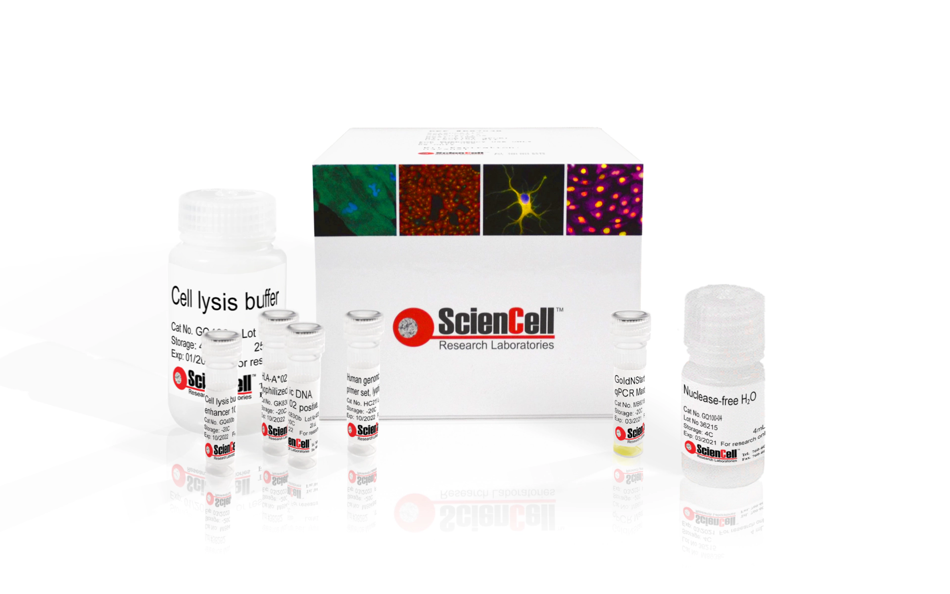GeneQuery™ HLA-A*02 Screening Kit by qPCR (GSHA02) utilizes SYBR®Green-based qPCR with melt curve analysis to reveal the presence or absence of HLA-A*02 allele in a human cell sample. GSHA02 can utilize either cell lysate or purified genomic DNA as the qPCR template. The cell lysis buffer and enhancer (Cat #GQ400a and GQ400b) are included in the kit to lyse pelleted cell samples. Each GSHA02 kit contains a HLA-A*02 (A02) primer set and a genomic DNA Control (GDC) primer set. The A02 primer set amplifies only the HLA-A*02 allele, but not other HLA-A alleles. The GDC primer set targets a region on human chromosome 21 and is included to examine the quality of the test sample, qPCR components, and qPCR conditions. Each primer set included in GTM-HA26 has been validated by qPCR with melt curve analysis and gel electrophoresis for amplification specificity. The 2X GoldNStart TaqGreen qPCR Master Mix (Cat #MB6018a-1) is a SYBR®Green dye-based qPCR master mix with a hot-start property. It contains SYBR®Green, dNTPs, Taq DNA polymerase, and an inert gold-color loading indicator in a single tube. The hot-start property achieved through ScienCell's unique chemically modified Taq DNA polymerase provides maximal inhibition of primer dimer formation. The advanced buffer formulation provides superior specificity and efficiency with a wide linear dynamic range. The inert gold-color loading indicator allows for better visualization and tracking of sample loading in qPCR plates or tubes. The HLA-A*02 positive genomic DNA control (Cat #GK830b) is the gDNA extracted from HLA-A*02 positive cells. The kit provides enough reagents for running 10 qPCR reactions each with the A02 and the GDC primer sets.