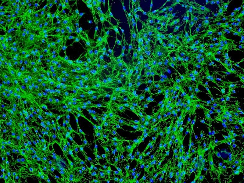 HPrF from ScienCell Research Laboratories are isolated from human prostate tissue. HPrF are cryopreserved at passage one and delivered frozen. Each vial contains >5 x 10^5 cells in 1 ml volume. HPrF are characterized by their spindle morphology and immunofluorescence with antibody specific to fibronectin. HPrF are negative for HIV-1, HBV, HCV, mycoplasma, bacteria, yeast and fungi. HPrF are guaranteed to further expand for 15 population doublings under the conditions provided by ScienCell Research Laboratories.