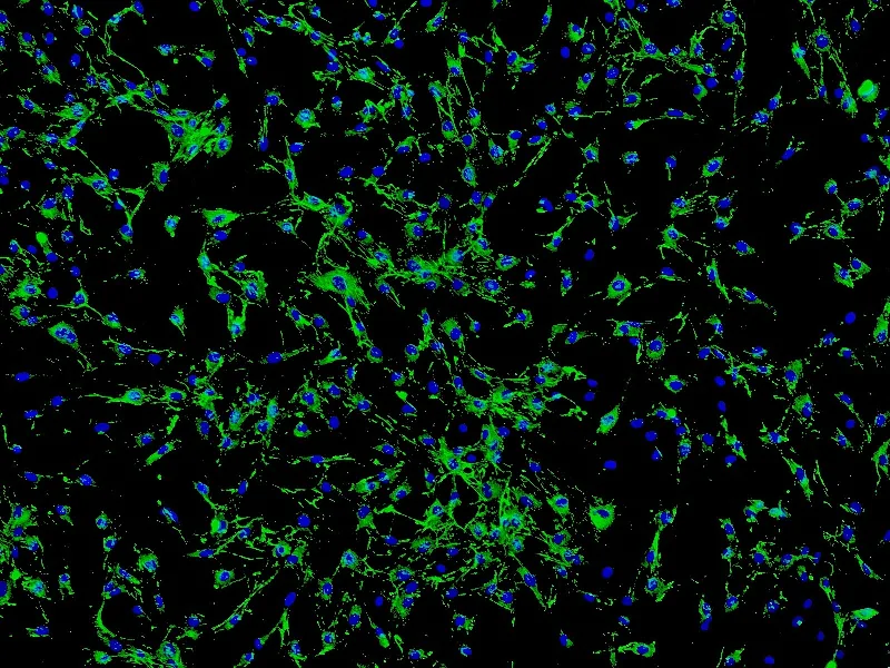 HOCF from ScienCell Research Laboratories are isolated from human ocular choroid. HOCF are cryopreserved at passage one and delivered frozen. Each vial contains >5 x 10^5 cells in 1 ml volume. HOCF are characterized by their spindle morphology and immunofluorescence with antibody specific to fibronectin. HOCF are negative for HIV-1, HBV, HCV, mycoplasma, bacteria, yeast, and fungi. HOCF are guaranteed to further expand for 15 population doublings under the conditions provided by ScienCell Research Laboratories.